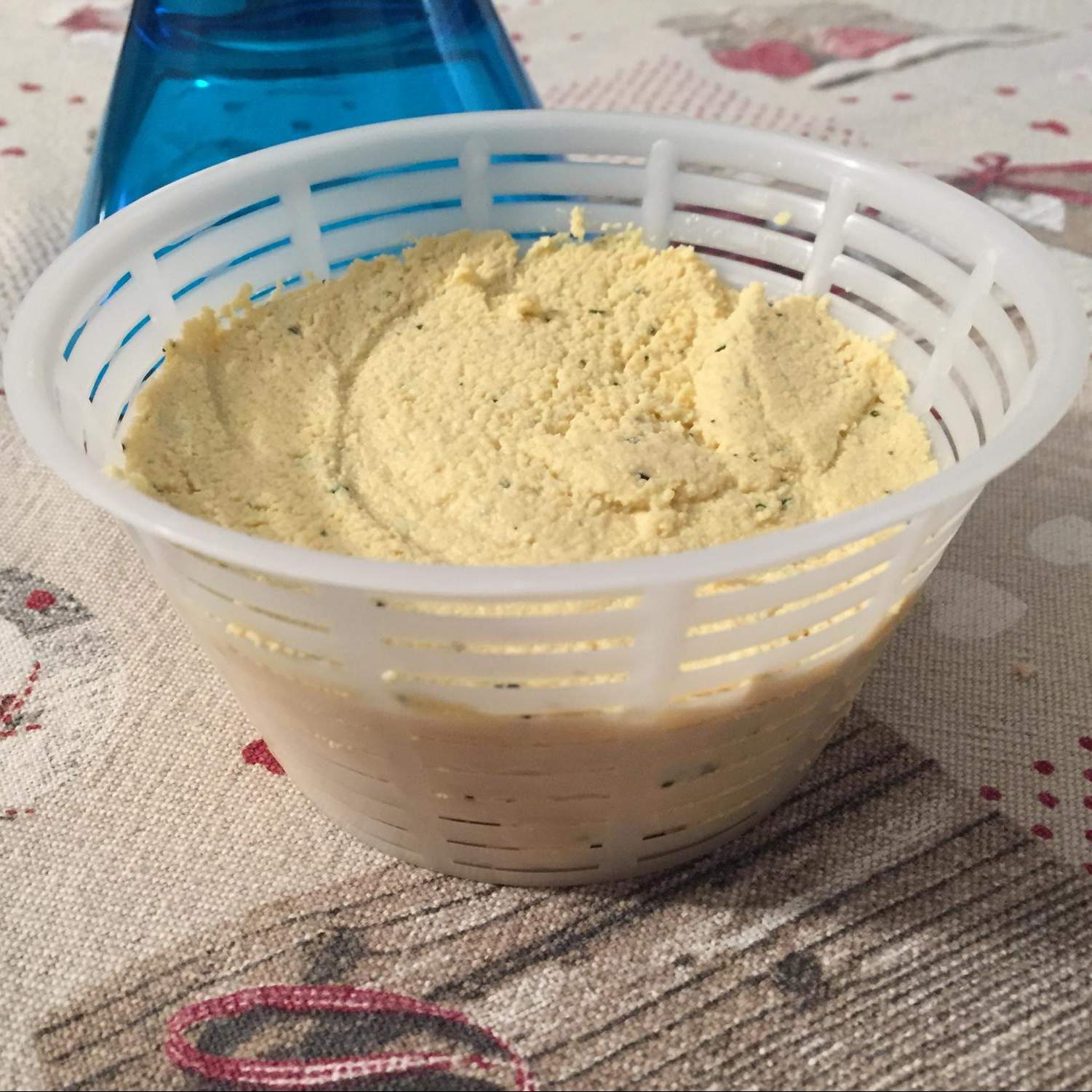 Versare il composto in un piccolo scolapasta a maglia fine oppure in un'apposita retina per ricotta (vedi immagine).