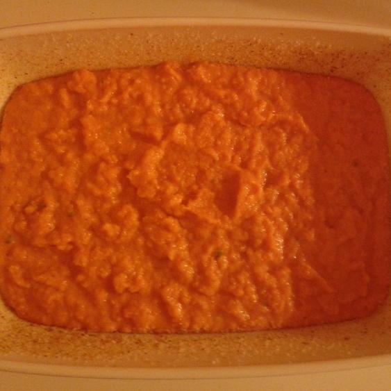 A cottura ultimata togliete l'acqua di cottura ed inserite nel boccale per prime tutte le carote, aggiungete 2 uova, 1/2 vasetto di yogurt, parmigiano secondo il vostro gusto, 2 cucchiai di pan grattato, 15 gr di burro e 2 foglioline di salvia fresca (in alternativa va bene anche quella secca) ed eventualmente regolate di sale. Frullare il tutto per 30 sec. vel. 5. Imburrate una teglia e spolveratela con del pan grattato, versate il composto arancio e livellate.