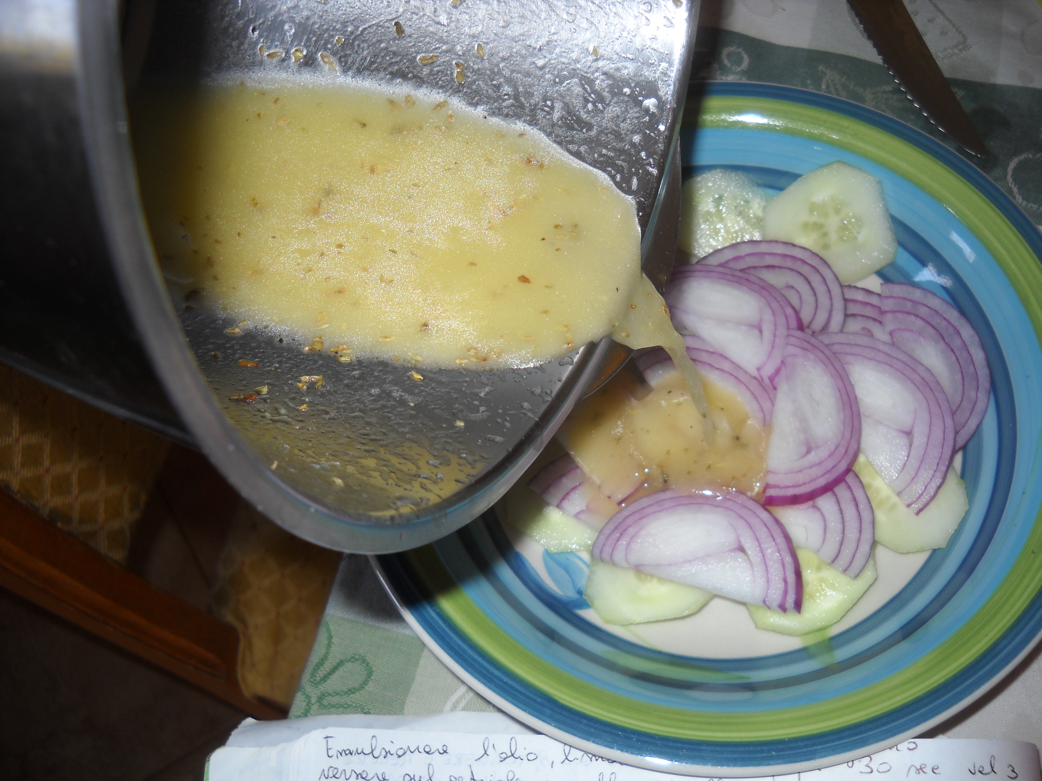 - Versare sul cetriolo e la cipolla precedentemente affettati.