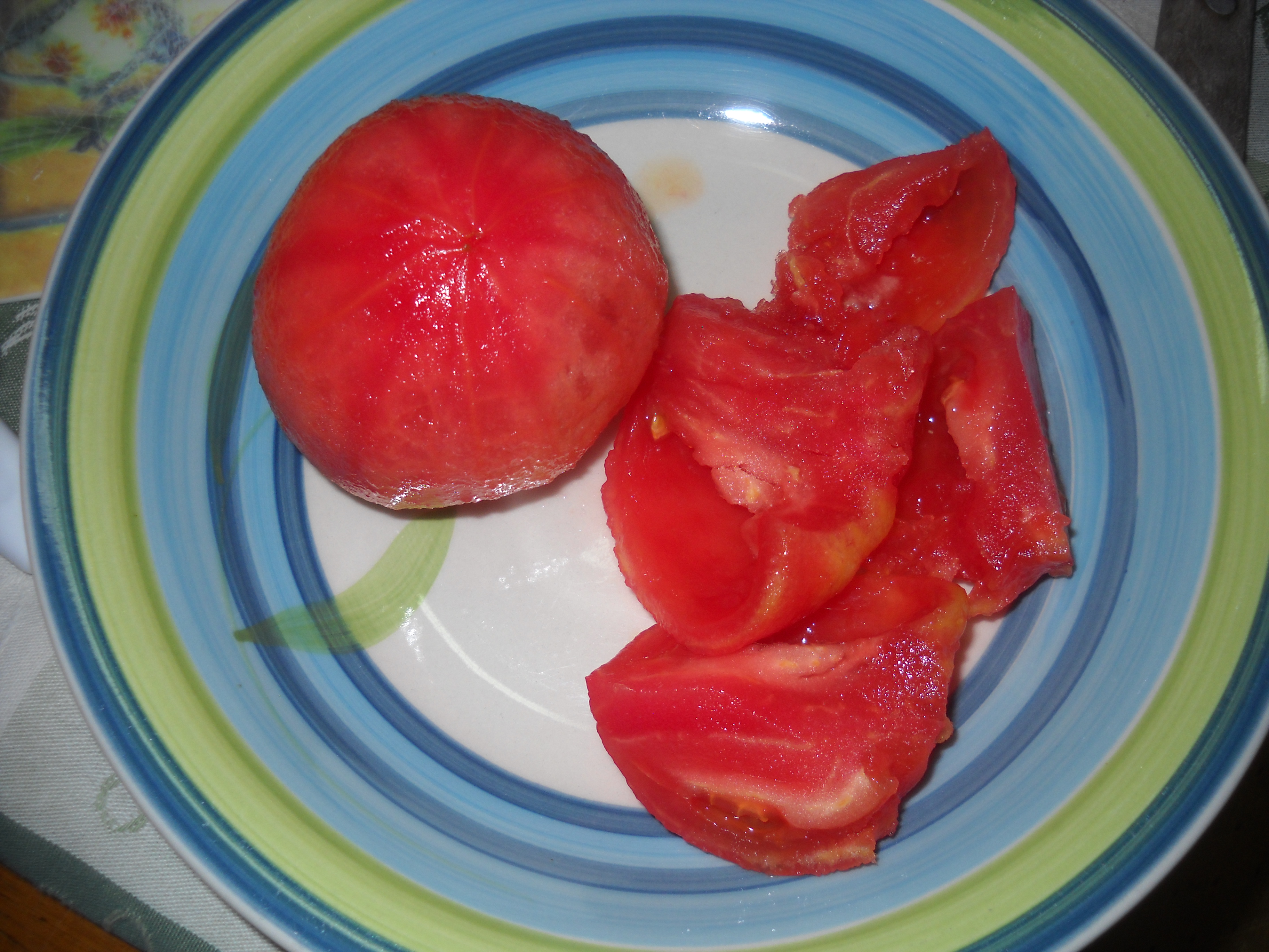- A bollore raggiunto, spegnere il fuoco e mettere i pomodori per qualche secondo nell'acqua; dopodichè con l'aiuto di un mestolo toglierli dall'acqua e spellarli, tagliarli a pezzettoni e privarli dai semi.