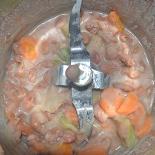 "coperchio chiuso" carota, sedano e cipolla 5 sec vel 6/7, raccogliere sul fondo e ripetere l'operazione se necessario.