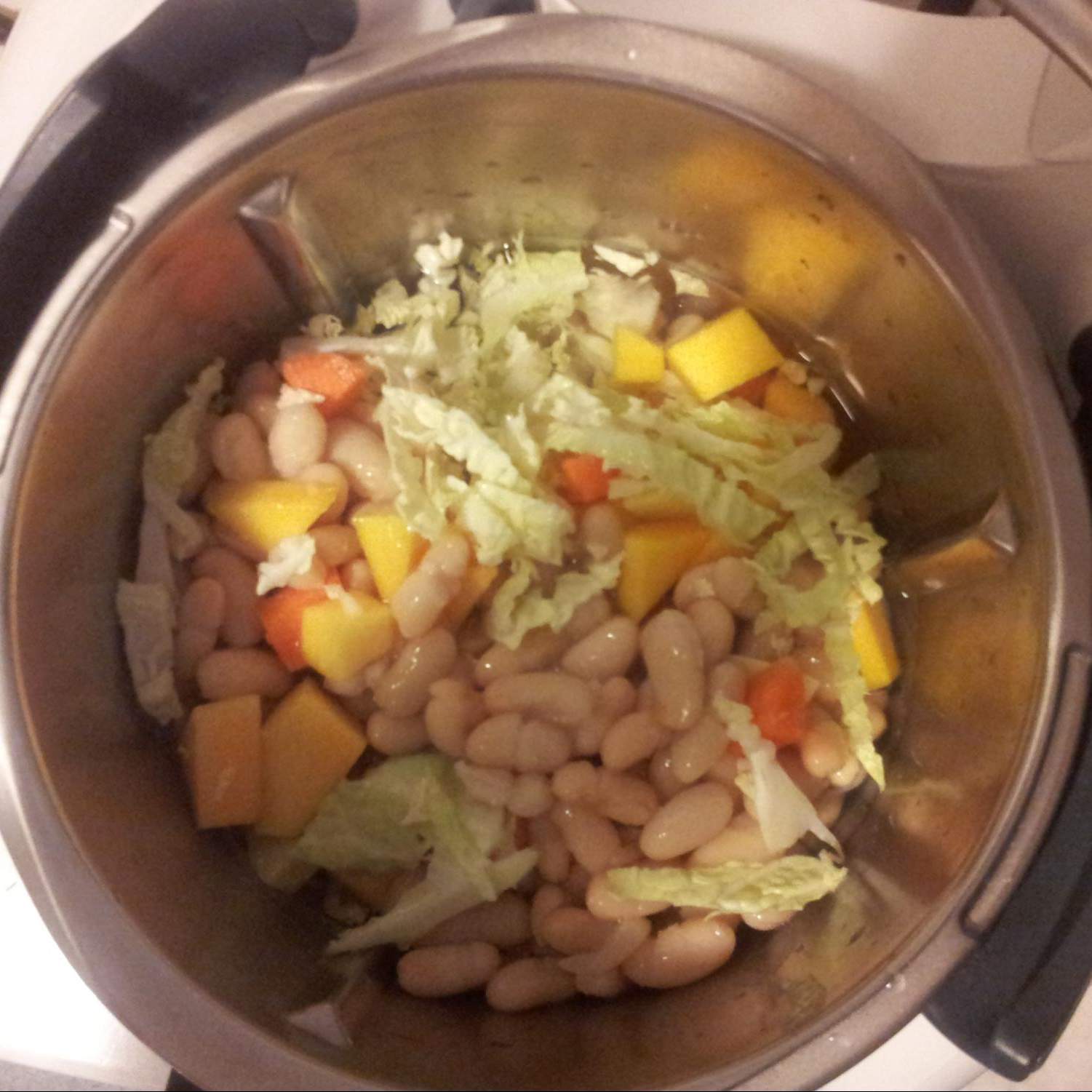 "coperchio chiuso" , mettere la zucca e rosolare per 3 minuti 100°