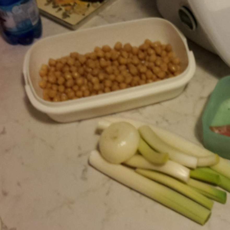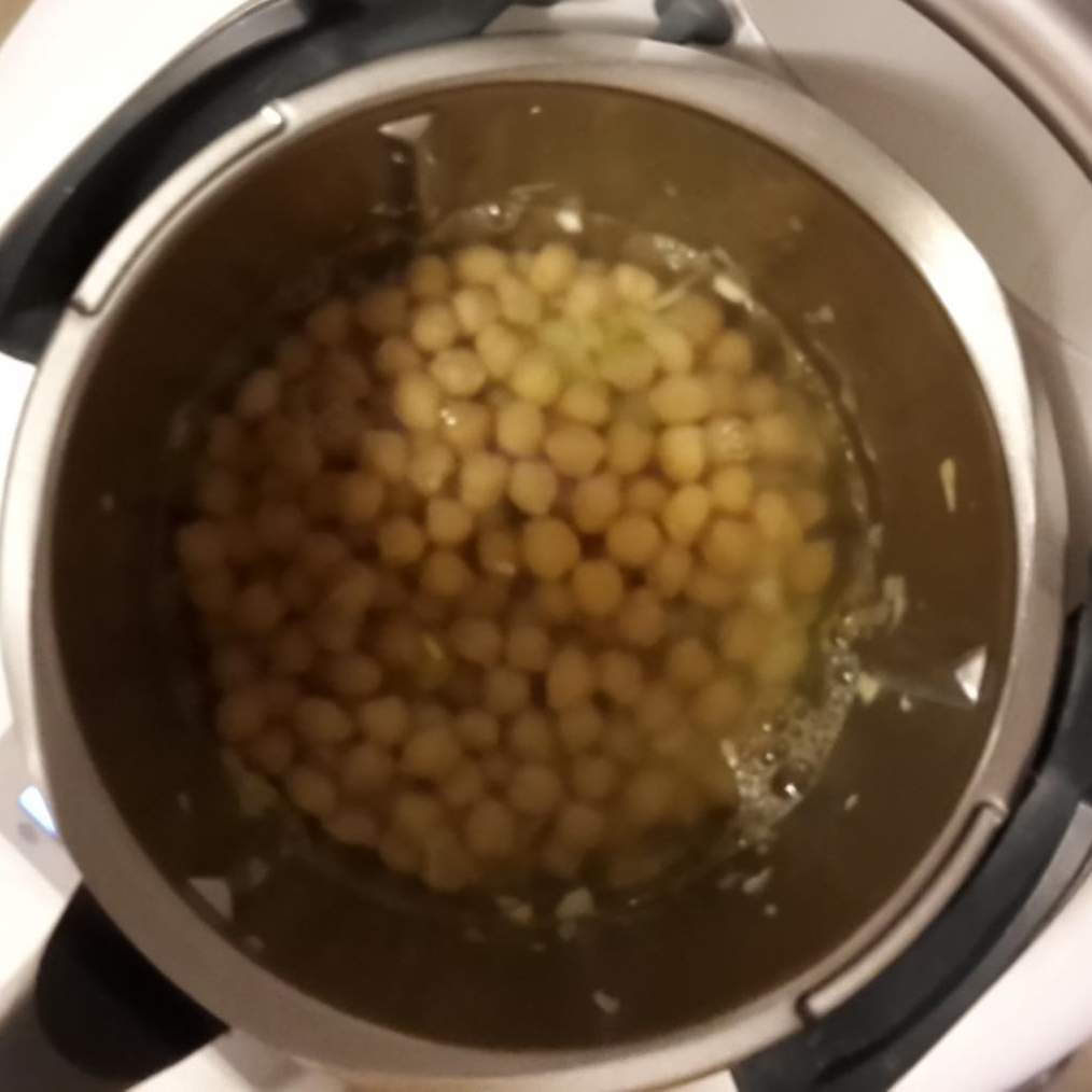 3. Aggiungere i ceci, il dado e l'acqua e cuocere per 30 minuti a 100° vel 1.