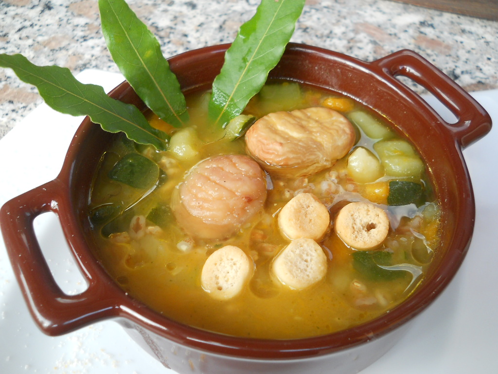 "antiorario" /vel. 1 e unite anche le castagne spezzate; - Quando la nostra zuppa è pronta traferitela in una zuppiera e servitela con crostini un filo di olio a crudo e se vi piace ancora qualche castagna.