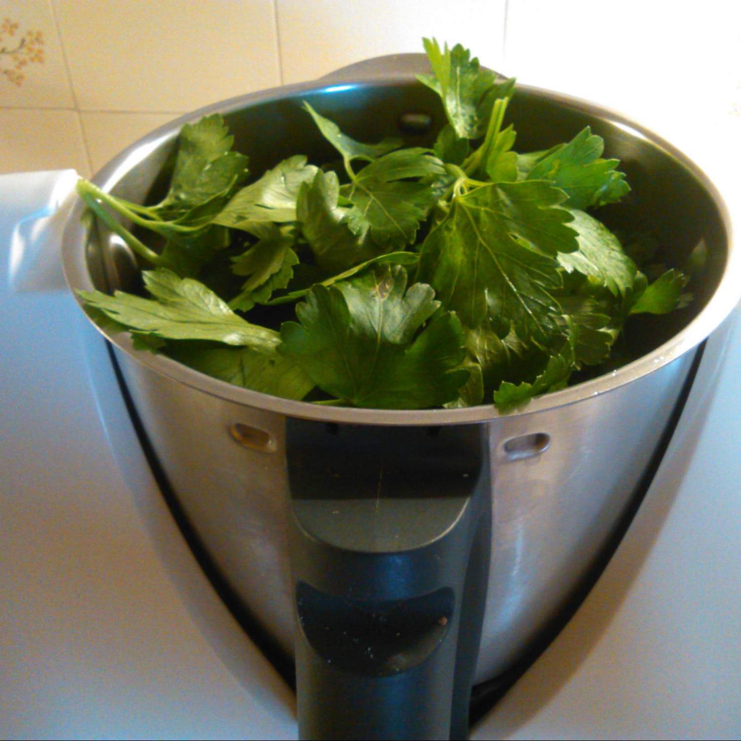 1. Lavare i 130 g. di prezzemolo pesato dopo averlo privato dai gambi grossi ed asciugatelo.