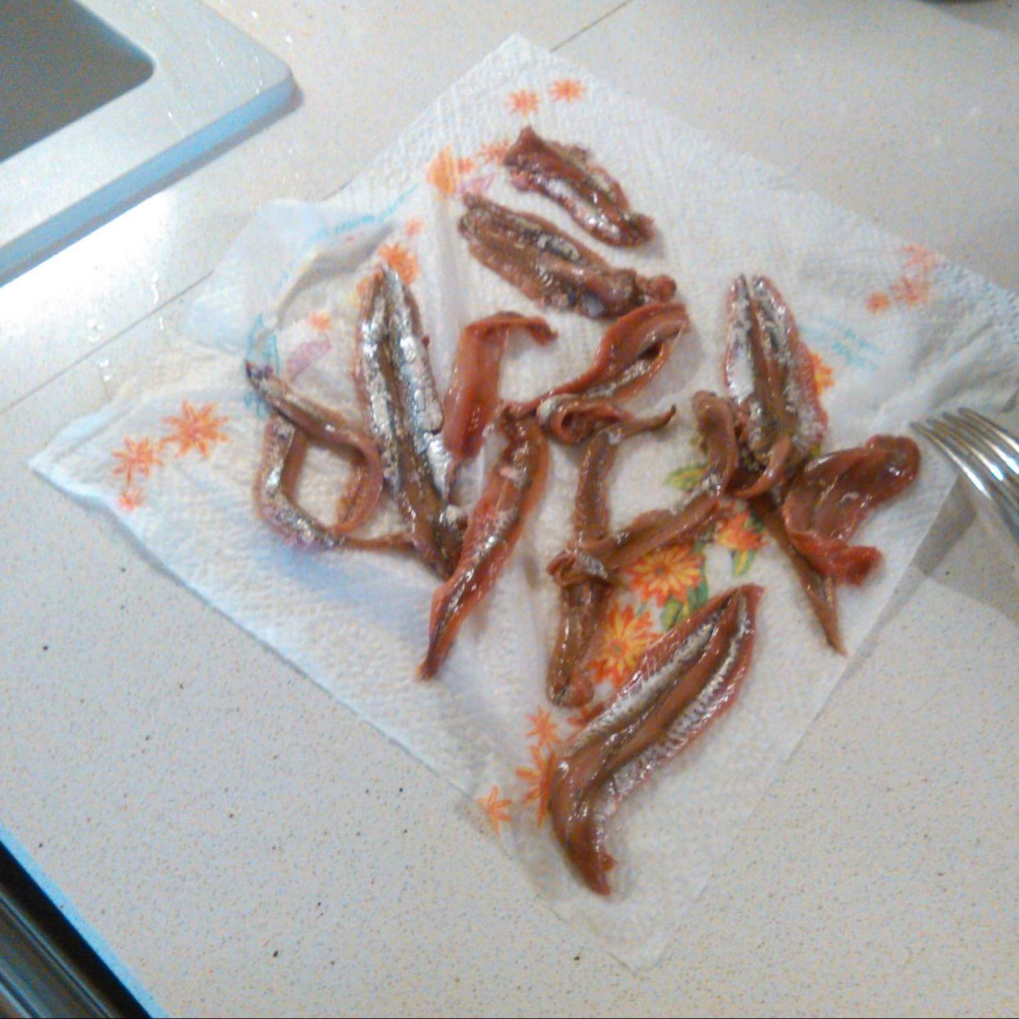 13. Togliere le lische alle acciughe, lavarle ed asciugarle.