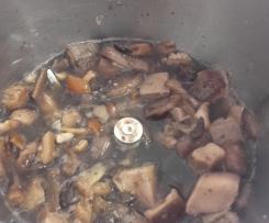 Accendere il forno statico a 180°C. - Con il cestello scolare i funghi dalla sua acqua e tenere da parte.