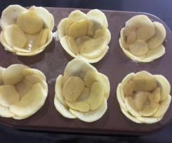 Aggiungere il prezzemolo spezzettato e, mettere da parte a raffreddare. - Tagliare le patate sottilissime con la mandolina, condire con sale aromatico, pepe e olio (distribuire bene il condimento con le dita).