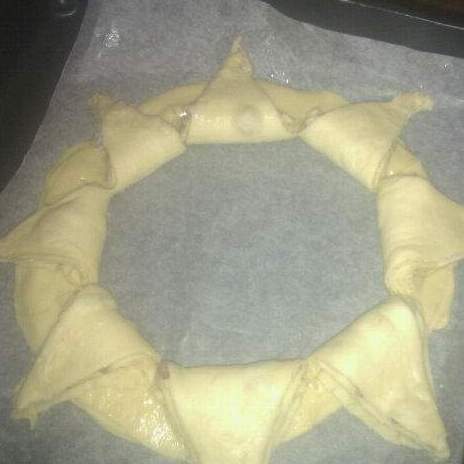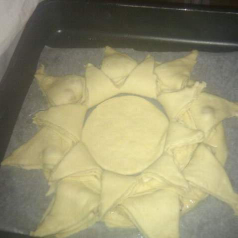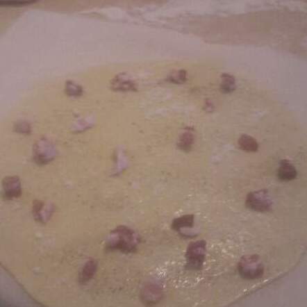 ribaltare il bordo alle esterno del cerchio ,, formare le sfoglie medie con lo stesso procedimento