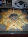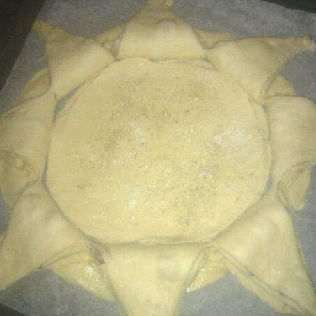 ..riprendere l'impasto e dividere in3 parti 1 piu'grande 1 media 1 piu'piccola....l'impasto grande e medio dividerli in5 parti fare delle sfoglie circolari ,ungerle di olio formaggio e pepe e cotto sovrapporle una su l'altra dividere con un coltello affilato in 8 spicchi ,senza tagliare il bordo ,