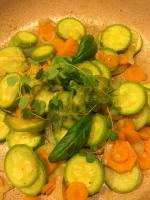- Alla fine degli 8 minuti aggiungere le zucchine, il dado e salare, cuocere per altri 12 minuti alla medesima temperatura;