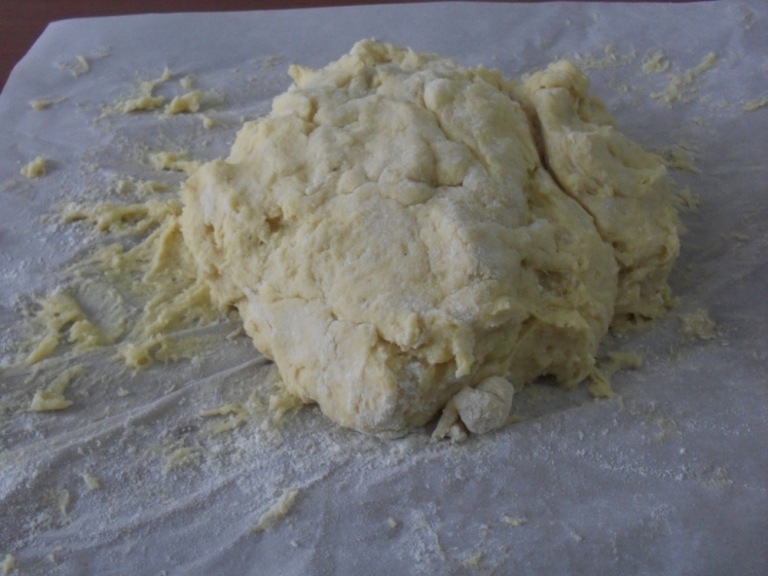 versare l’impasto sulla spianatoia infarinata, con le mani infarinate fare una palla,