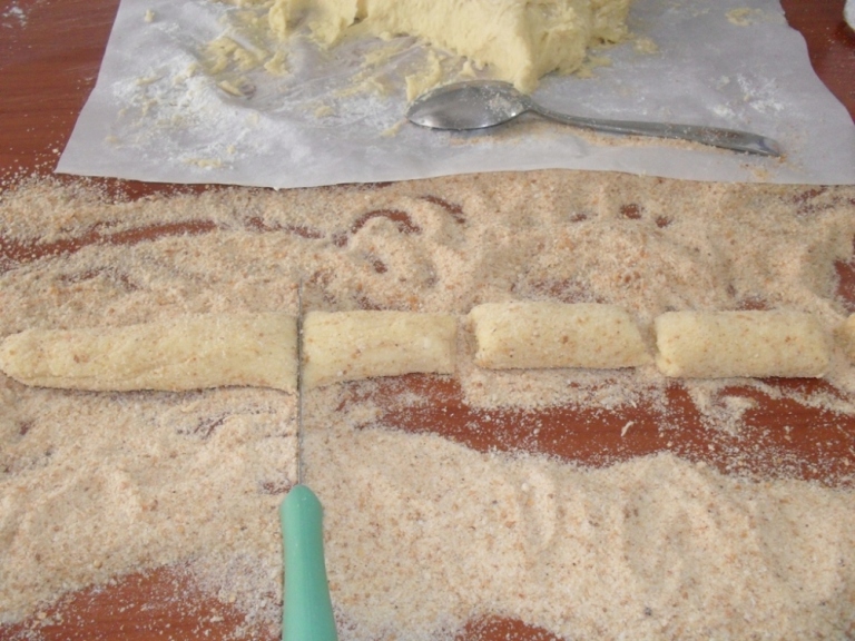 prendere con un cucchiaio delle porzioni di pasta ed aiutandosi con il pangrattato fare dei rotolini,