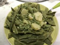 - Sistema le verdure cotte in un piatto da portata, condisci col pesto e guarnisci con mandorle intere e foglie di basilico.