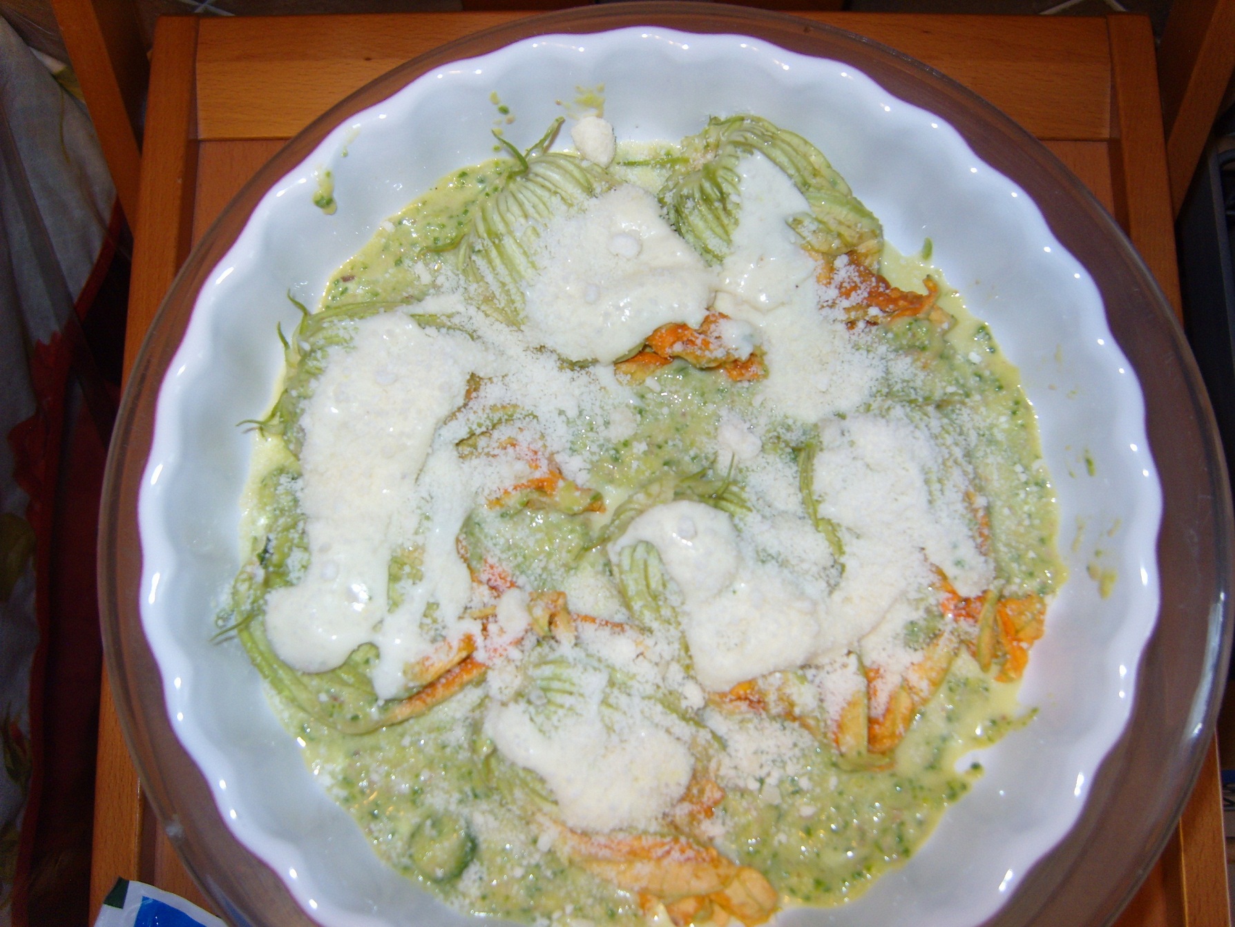 Bellissima ricetta, molto invitante, mi piacciono molto i fiori di zucca, ma finora li ho consumati solo fritti in pastella. bravaaa!!, li farò prestissimo
