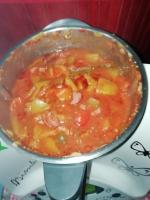 4. Aggiungere nel coperchio chiuso"coperchio chiuso" passata di pomodoro, zuchero, sale,