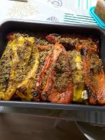 Grazie a tutte per i complimenti, tra l'altro è stata una gradita sorpresa di cui ne sono venuta a conoscenza solo oggi. Infatti il 30 scorso ero sul traghetto che da Palermo ci riportava a Napoli e poi in viaggio per il paesello del Molise dove sono stata per due giorni.......insomma rientro solo oggi e trovo questa graditissima sorpresa che ormai è già passata.....ma questi peperoni ve li consiglio proprio, a mio parere sono digeribilissimi perchè sono arrostiti e ripassati in forno, almeno anche mio marito che di solito con i peperoni ci va cauto, preparati così li trova gustosissimi.