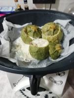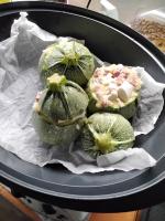 Riempire le zucchine e posizionarle nel varoma con carta forno bagnata e strizzata.