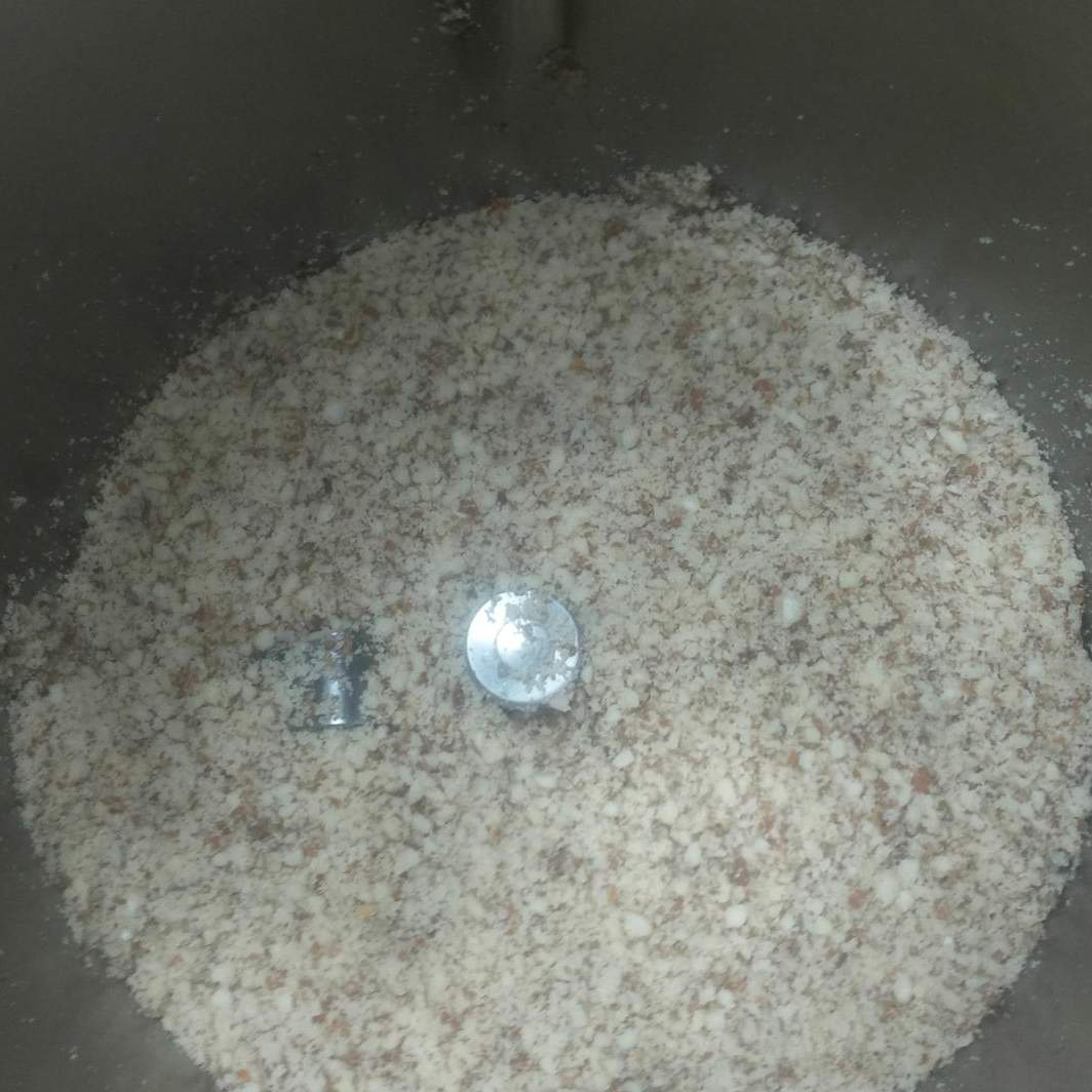 "coperchio chiuso" le mandorle sia dolci che amare e tritare 30 sec. vel. 5; - Aggiungere zucchero, albumi e il pizzico di bicarbonato (punta di un coltello affilato) e impastare per 20 sec. vel. 4;