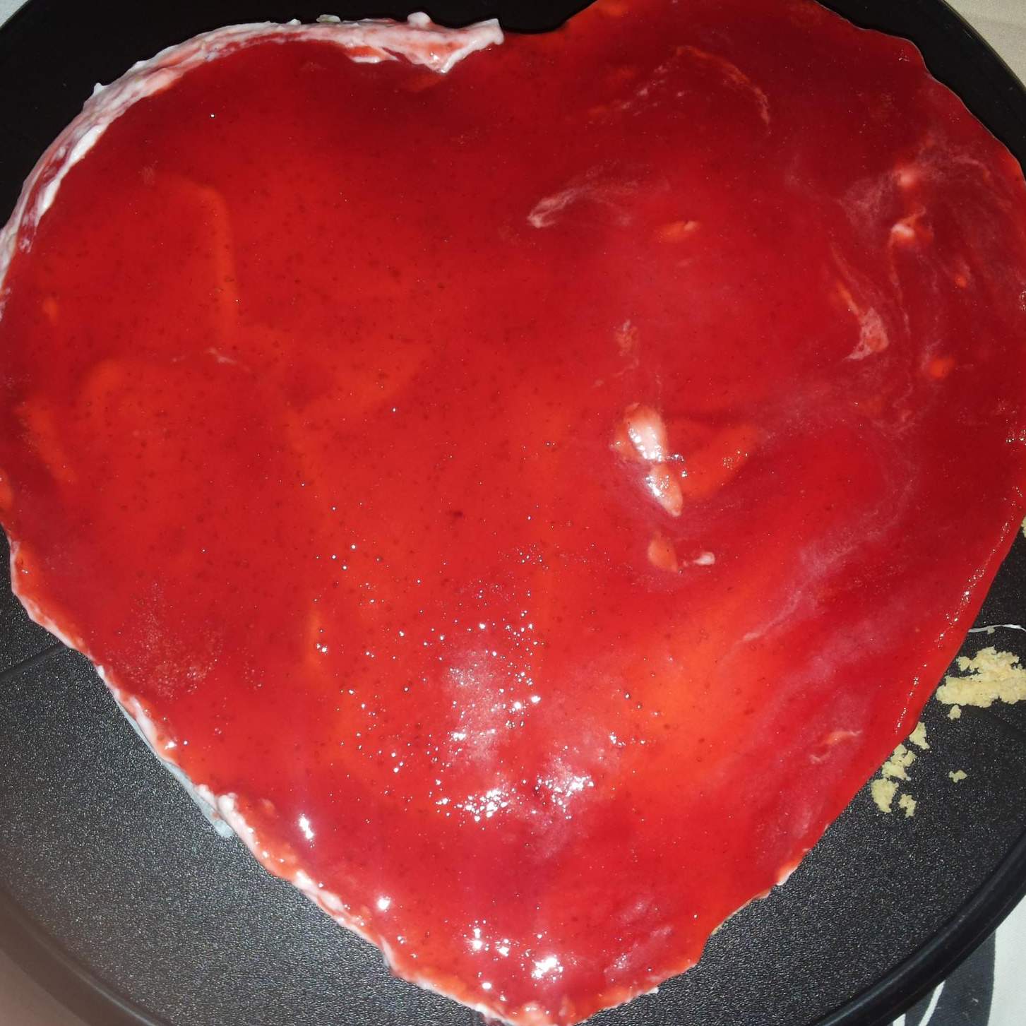 Aspettare che la salsina si freddi e poi metterla sopra alla torta. Mettere ancora in frigo a raffreddare per almeno 2 ore.