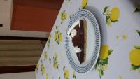 Eccola anche se sbilenca, questa è l'unica fetta rimasta! Io ho decorato con della panna montata, che bontà!