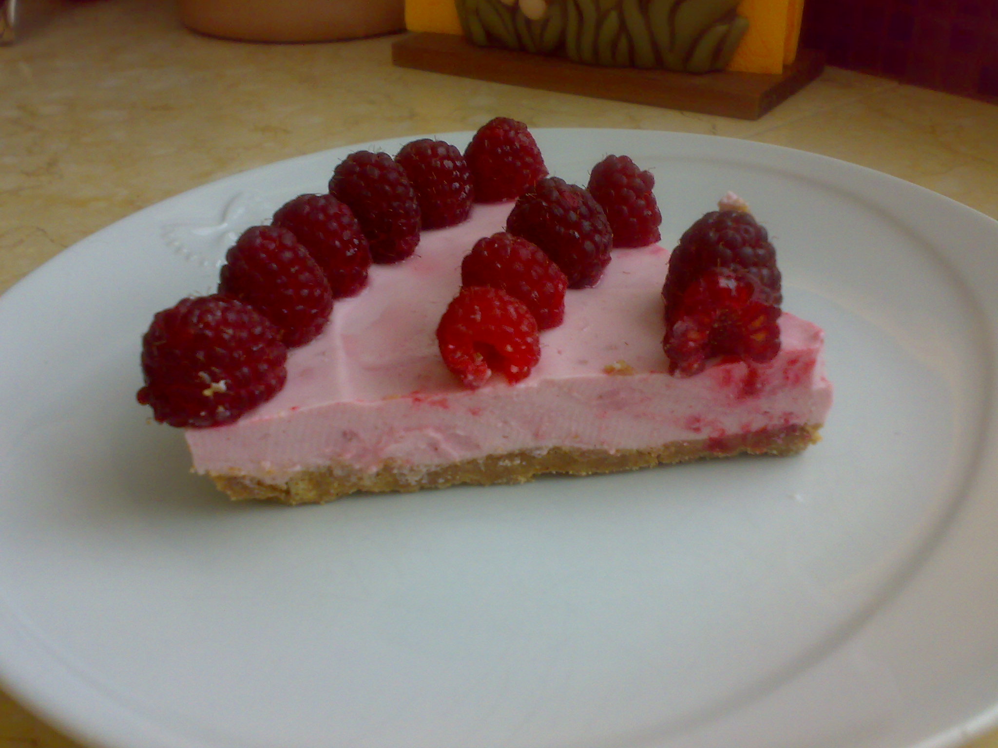 Versare la crema nello stampo, livellare e riporre in frigorifero per 5 min. successivamente riprendere lo stampo e decorare con i lamponi.
