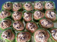 Polverizzare zucchero e caffè 10 sec. vel.7, unire il mascarpone 30 sec. vel.3, mettere in una sac a poche e coprire i cupcakes. Infine decorare con le gocce di cioccolata.