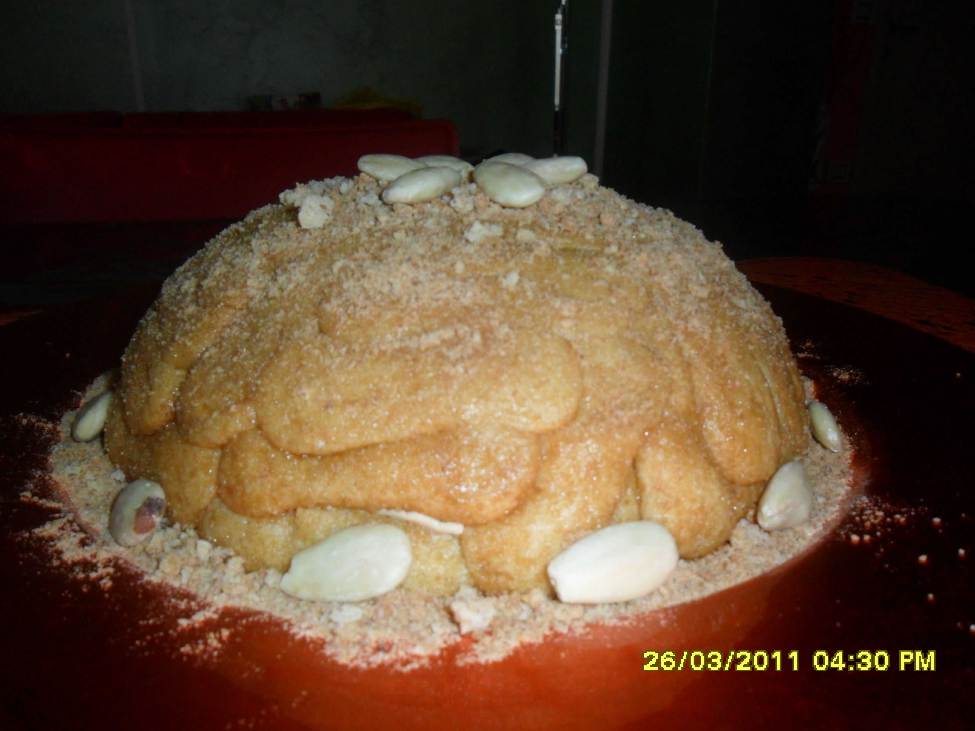 Bagnare i pavesini e disporli in uno stampo a cupola(io li ho messi senza la pellicola e non ho avuto problemi al momento di estrarre il dolce ma per sicurezza è meglio metterla), rivestire tutte le pareti fino al bordo superiore. Colare sui pavesini così disposti il composto al caffè e ricoprire la base con un altro strato di pavesini. Mettere nel freezer per circa 1 ora, capovolgerlo su un piatto da portata e decorare a piacere. Buona degustazione!