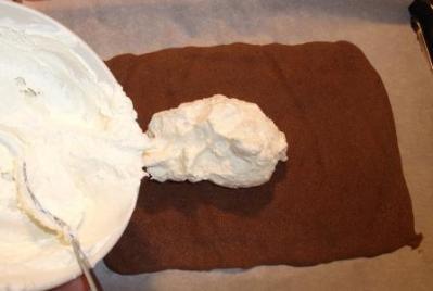 pulito, munito di farfalla, montare gli albumi: 2min / 37° / vel 4. Unire all'impasto, amalgamare. Distribuire bene il composto sulla teglia. Cuocere 4min esatti !!! Spegnere il forno, lasciare il dolce dentro. Tirarlo fuofi soltanto quando è ben asciutto. Raffreddarlo del tutto.Preparare la crema: nel