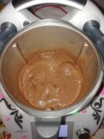 - Aggiungere il cioccolato tagliato a pezzetti e lo zucchero di canna: 3 min 70 gradi, vel 3;