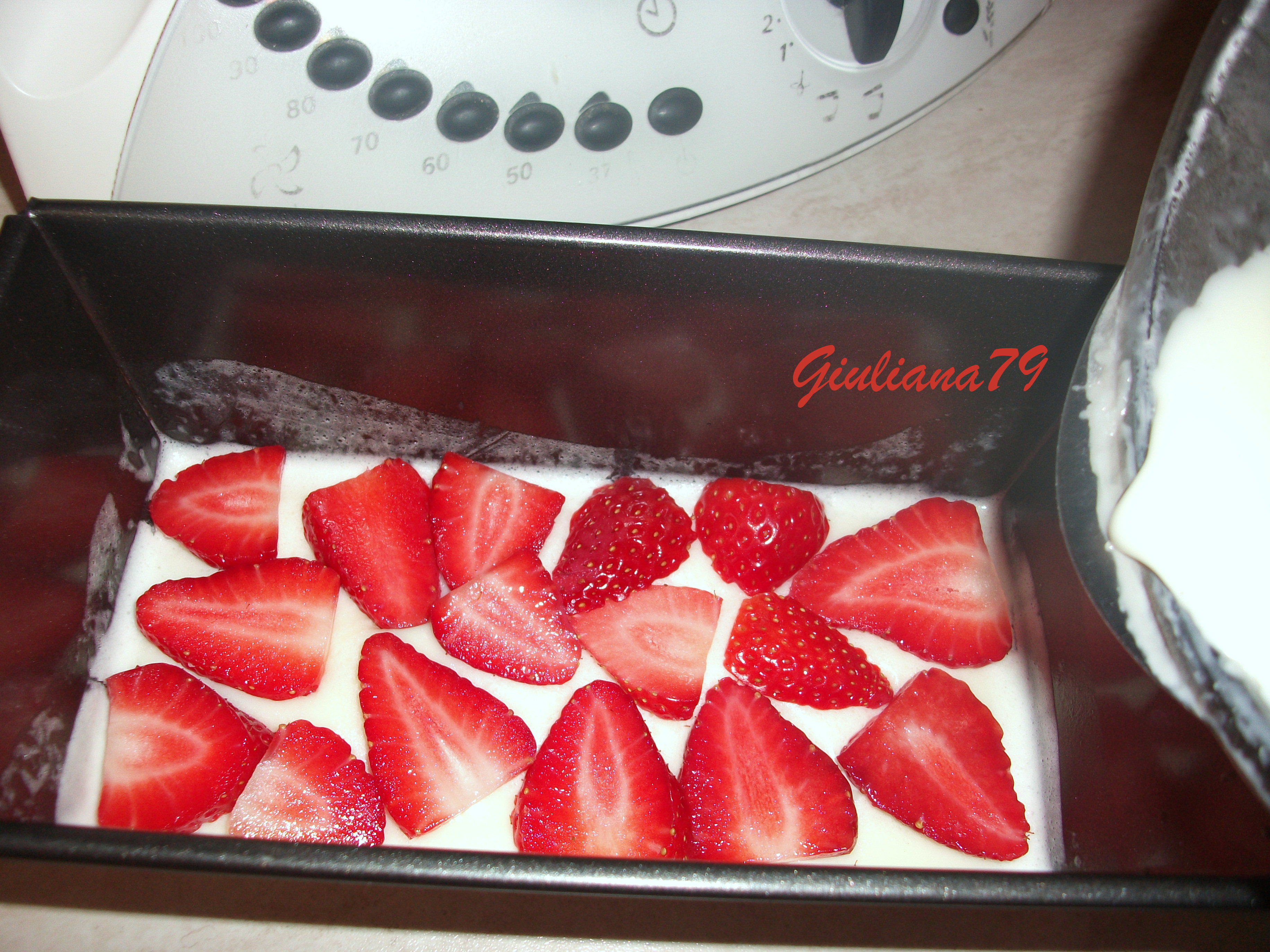 In uno stampo da plumcake da 1/2 l versarvi un dito di panna cotta e mettere in frigo x 15 min x far rapprendere un po'.( a volte occorre più tempo, l'importante è che si sia creata la pellicola in superficie x evitare che le fragole affondino ). Trascorsi i 15 min o più aggiungere uno strato di fragole a fette e versarvi dell'altra panna, ancora in frigo x 15-20 min. continuare ad alternare le fragole alla panna ricordandosi di lasciare in frigo ad ogni strato in modo che la panna si rapprenda un po'. terminare con la panna .
