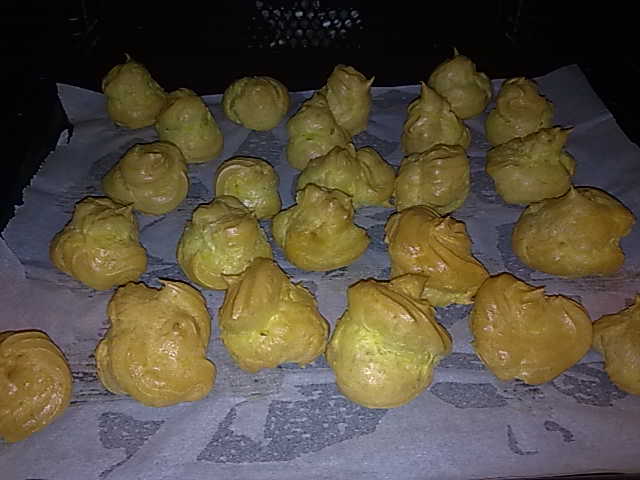 "coperchio chiuso" POI AGGIUNGERE CON LAME IN MOVIMENTO A VEL.4 LE UOVA UNA ALLE VOLTE LAVORANDO ANCORA PER 30-40 SEC. VEL.5. DISPORRE SULLA PLACCA DA FORNO RICOPERTA DA CARTA DA FORNO DELLE PALLINE DI PASTA CON LA SACCA BEN DISTANZIATE TRA LORO. CUOCERE IN FORNO CALDO 15 MIN. A 220° POI 30 MIN. A 180° POI ANCORA 10 MIN A 160° CON FORNO UN PO' APERTO PER FARLI ASCIUGARE BENE. MEGLIO PREPARARLI LA SERA PRIMA. CREMA PER FARCITURA: