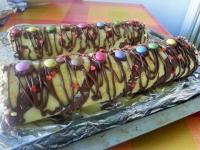 Assemblaggio: srotolare delicatamente la pasta, farcire con il gelato, riarrotolare porre in congelatore per almeno 8-10 ore (se di più è meglio); Tirare fuori dal freezer eliminare le prime fette alle estremità per pareggiare il taglio decorare a piacere e riporre in freezer fino ad una 1/2 ora prima di servire