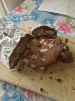 - Passato il tempo, togliere delicatamente la carta e tagliare a fette il vostro salame al cioccolato.