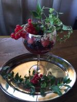 - Decorare con altra frutta di bosco e un po' di verde,che può essere menta o melissa.. io non avevo né l'una né l'altra e ho messo ciò che offre il mio giardino 😊;