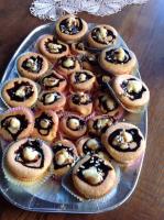 Ho apportato qualche modifica... Non ho fatto la glassa perché a mia figlia non piace e visto che saranno per il suo compleanno domani, ho voluto il più possibile avvicinarmi ai suoi gusti.... Ho decorato con una nocciolina di crema avanzata e del topping al cioccolato e codette di cioccolato bianco... Non me ne vogliano gli estimatori della ricetta...  tmrc_emoticons.;) ....