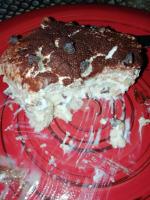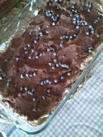 4. Aggiungere uno strato di crema allo yogurt greco e le gocce di cioccolato e proseguire con un altro stratto di biscotti inzuppati e continuare fino ad esaurimento gli ingredienti.