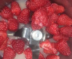 Frullare lamponi e succo di limone 10 Sec. Vel.8. filtrare i semini con un passino e tenere da parte.