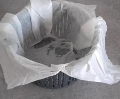 - Foderare il cestello con carta forno bagnata e strizzata (va bene anche uno stampo o un anello dal diametro di 20cm).