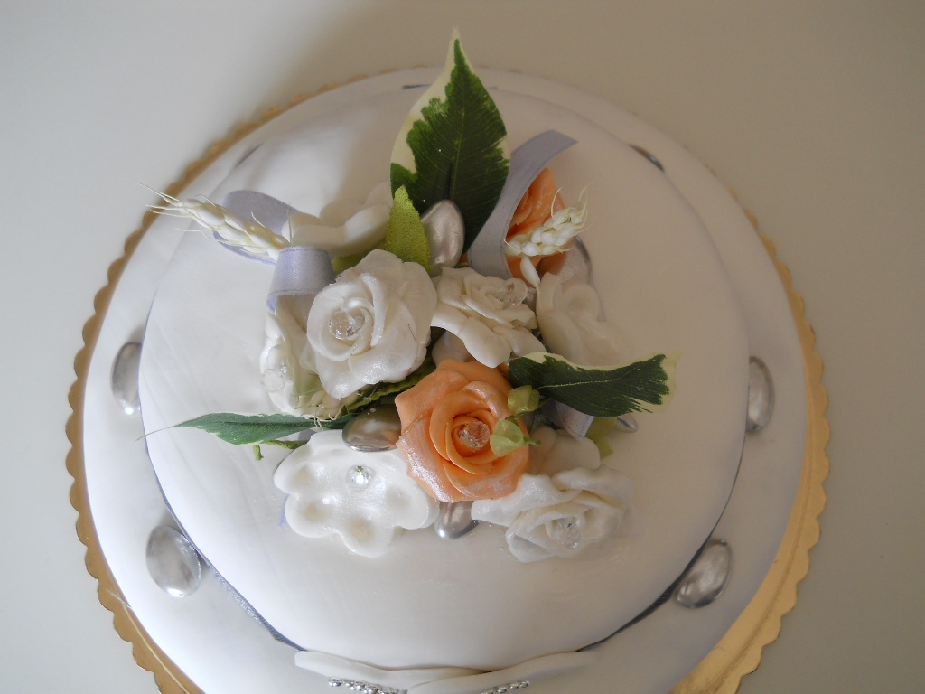 ricoprire la torta con la p.d. z. e infine decorare con i fiori preparati con la pasta di gomma.