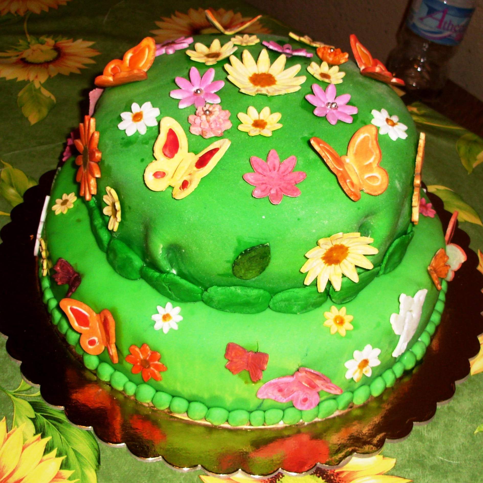 tagliare il primo pan di spagna inumidirlo con una bagna a piacere io ho usato del rum, mettere la panna aggiungere delle fragoline e la salsa di fragole coprire con l'altra metà di pan di spagna inumidirlo passate sopra della panna legermente per poter mettre la pasta di zucchero stesso pocedimento andrà fatto per l'altra torta cambiera la farcia che sarà di panna con gocce di cioccolato e salsa.