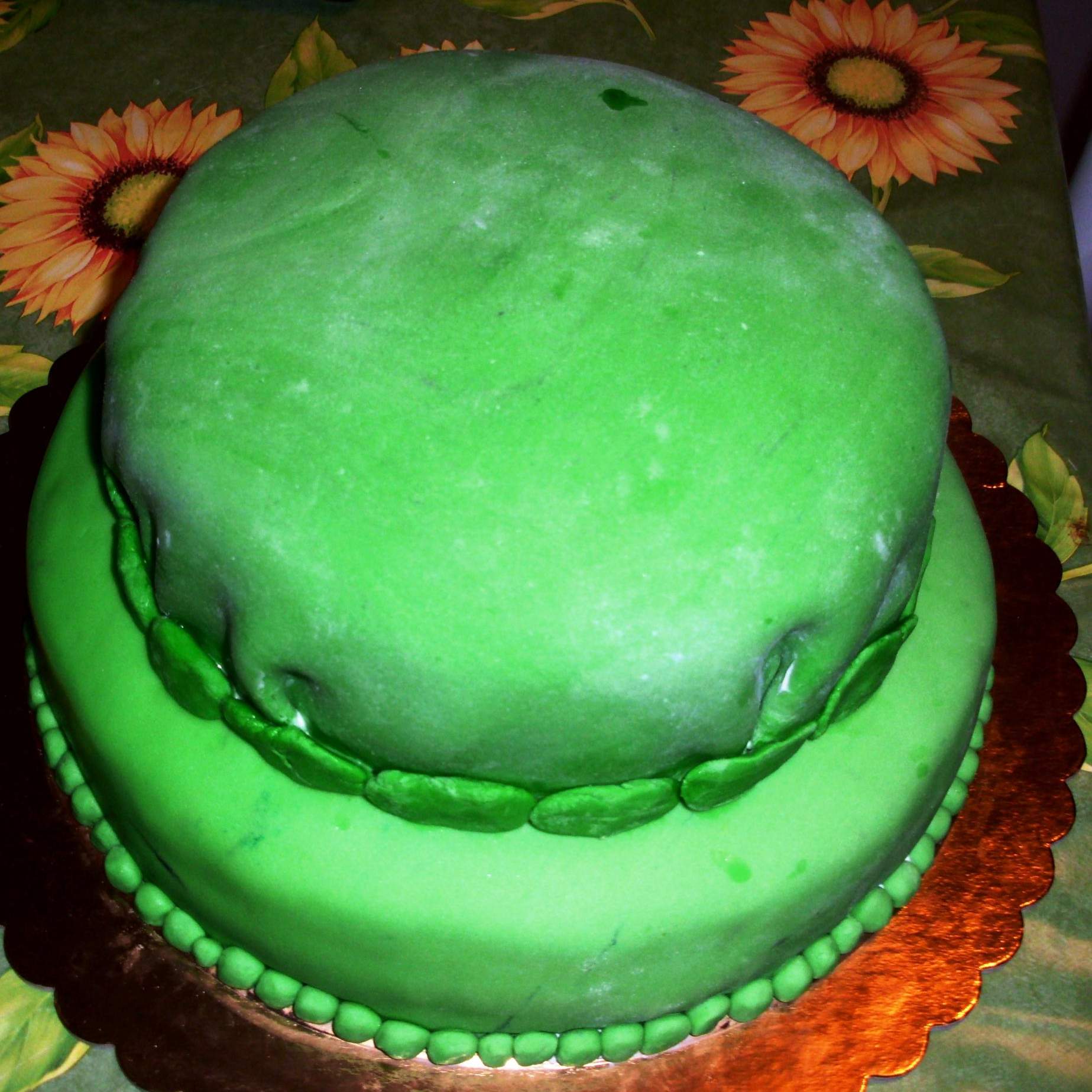 adesso nella prima torta metterete dei piolini all'interno per sostenere l'altra torta mettete tutte le decorazioni e mettere in frigo.