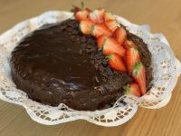 - Sciogliere il cioccolato fondente a bagnomaria e spalmarlo sulla superficie superiore della torta e sui lati.