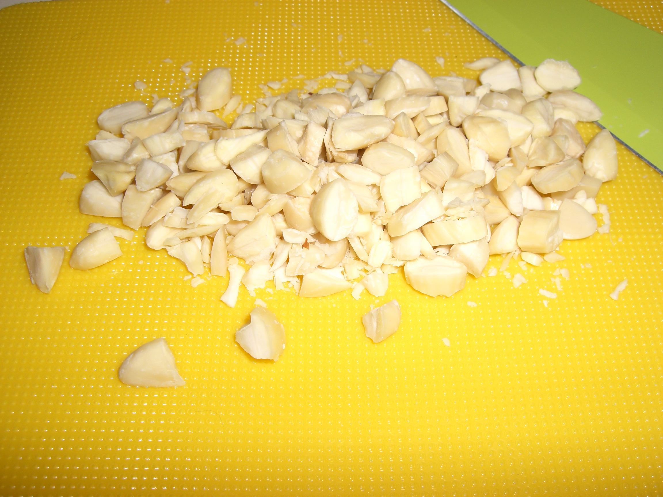 Tostare le mandorle tritate grossolanamente, io lo faccio a mano perchè così non si crea polvere ma rimangono tutti i pezzetti grossi.