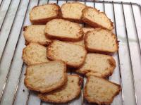 Lasciare raffreddare, tagliare a fette regolari, metterle sulla griglia del forno e tostarle a200° finchè diventano dorate.