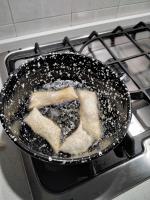 - In una padella antiaderente riscaldare abbondante olio di arachidi a fiamma vivace e friggere. Servire caldo