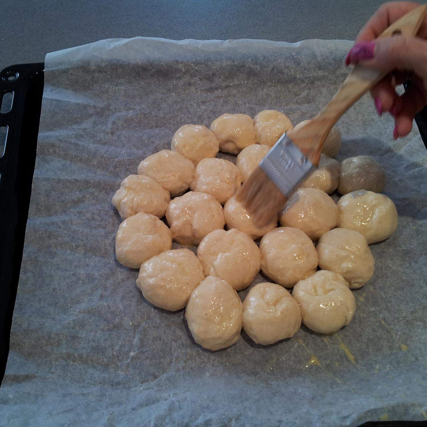 Con l'impasto formare palline di circa 5 cm di circonferenza ed adagiarle su una teglia rivestita di carta forno.