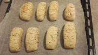 Una volta pronto l'impasto, lasciare lievitare in una ciotola infarinata coperta con strofinaccio da cucina e in forno spento per almeno 1 ora e mezza (io lascio anche per 12 ore). Passato il tempo della lievitazione, su una superficie infarinata, formare una specie di lunga baguette e dividerla in più parti (circa 6 per avere un formato tipo zoccoletti).