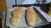 6. versare una ciotola d'acqua sulla placca inferiore e infornare velocemente le pagnotte. Cuocere per 20-25min (200C)