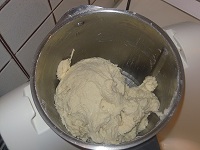 L'impasto deve risultare morbido ma si deve staccare dai bordi del boccale con facilità. se risultasse troppo appiccicoso aggiungere un po' di farina, se troppo duro un pochino di acqua. ogni volta che si aggiunge un ingrediente (acqua o farina) impastare almeno 2 minuti.